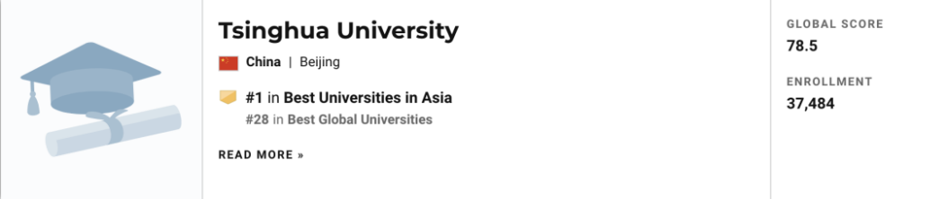 在本次排名榜單中,清華大學以世界第28名的成績位居亞洲院校第一名,北京大學為中國第二名,世界第51名。共有9所中國大學進入世界前兩百名。